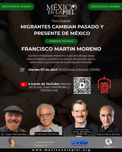 El foro digital de México en la Piel, “Migrantes cambian pasado y presente de México”, reunirá a voces influyentes como Francisco Martín Mor...